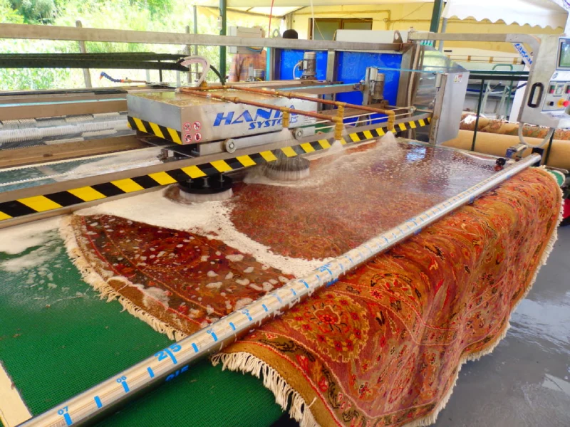 مراحل شستشوی فرش در قالیشویی زبرجد زیر نظر متخصصین و با استفاده از برس های مخصوص به صورت دورانی انجام میشود تا کلیه آلودگیها بدون هیچ آسیبی از سطح فرش پاک شوند.
